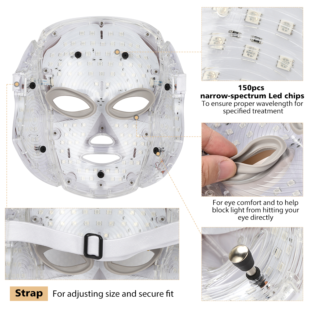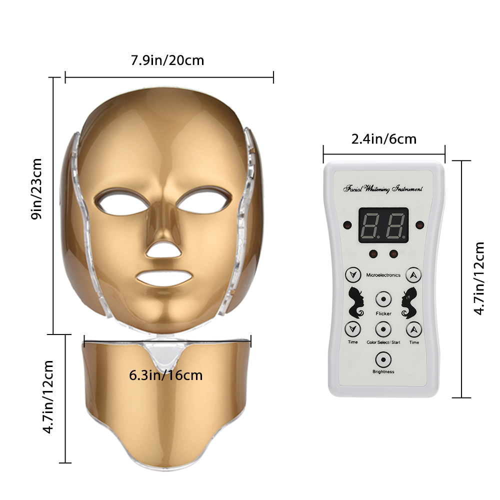 LED Facial Mask 7 Colors with Neck Light Therapy Skin Rejuvenation Beauty Skin Care Whitening Skin Shrink Pores Device Home Spa