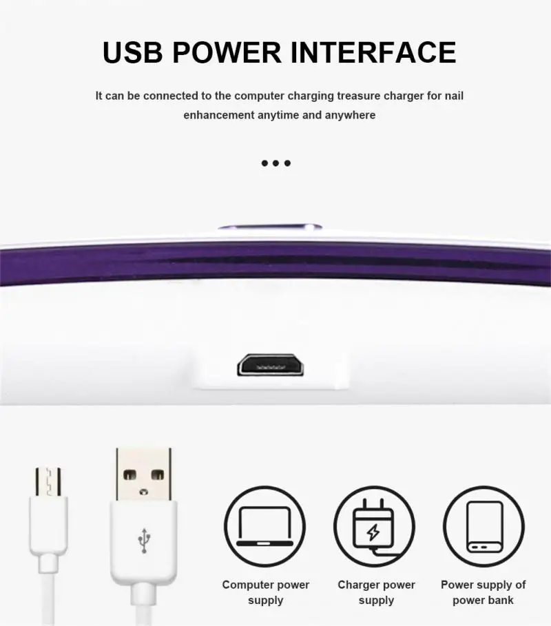 3. USB power port, can be connected to computer, power bank, charger, etc., nail art anytime, anywhere
