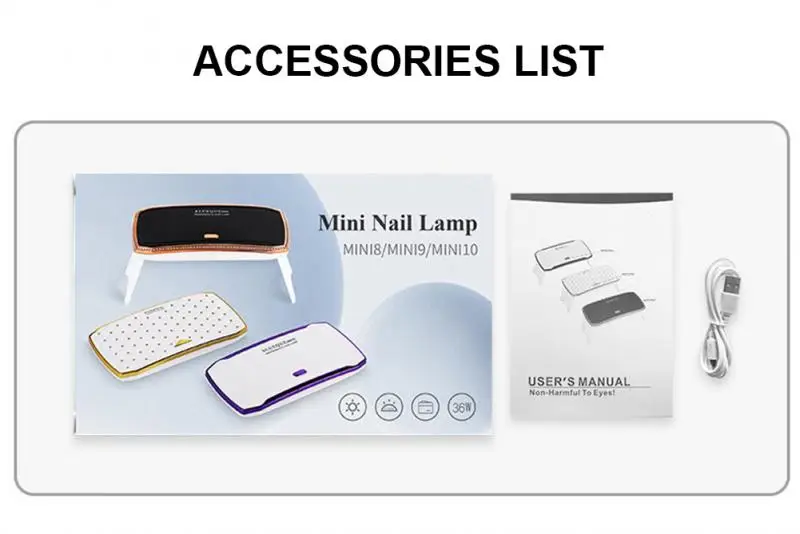 - Package Included: 1*Nail lamp 1*Instruction 1*USB charging cable